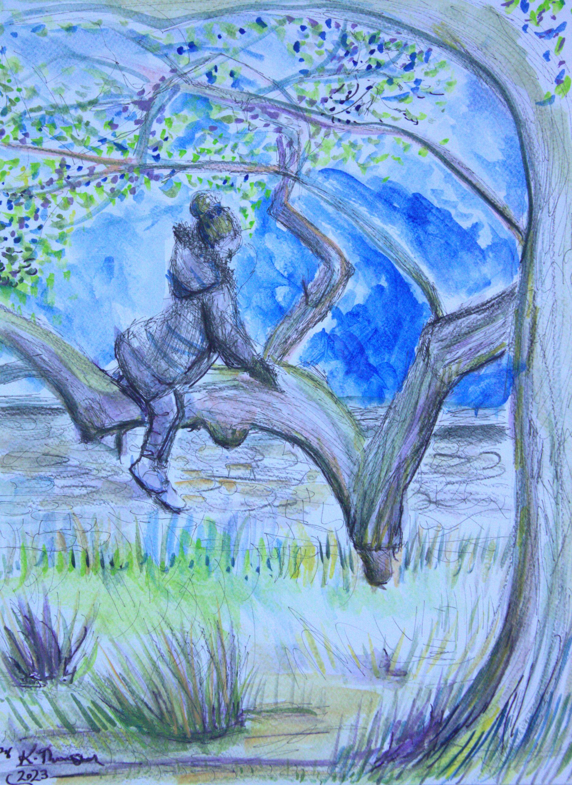 A little girl enjoying the freedom of climbing a tree.