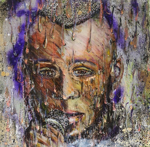 Portrait of singer Stormzy in mixed media and layers of resin creating a 3D effect on aluminium. Original 50cm X 50cm.