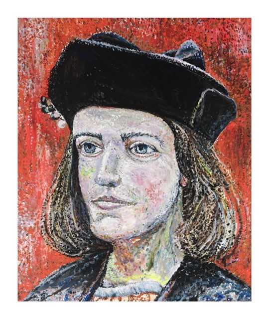 King Richard III, the last English King to die in battle was painted using pointillisim in oil and acrylic using scientific and historical sources for an art exhibition that was visited by thousands of people during King Richard III’s reburial in Leicester.